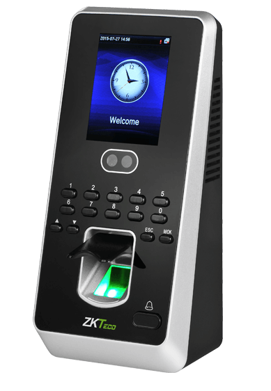 Sistema con lector de huella y lector de reconocimiento facial. Capacidad 4,000 huellas, 1,500 rostros y 100,000 registros.